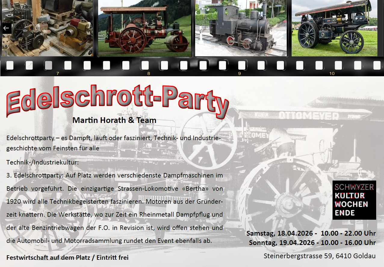 Infos gibt es auch unter: https://www.kulturwochenende.ch/3-edelschrottparty-goldau-goldau_AZdbA7b? sowie