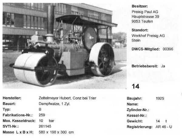 Bezug über den Dampfwalzen-Club, bitte via Mail dwcs@bluewin.ch an Rolf Wetter bzw. Telefon Mobile: 078 661 45 25